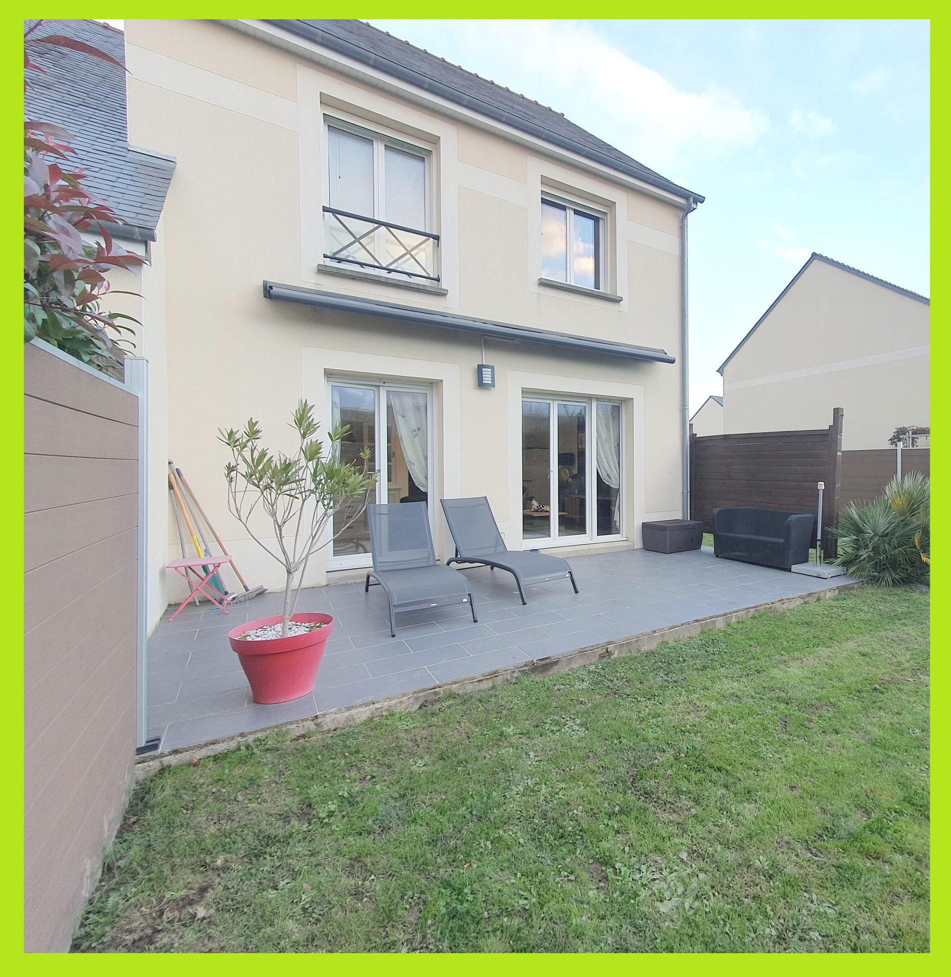 Venez poser vos valises dans cette belle maison 5 pièces au calme et en parfait état. Entrée dans pièce de vie avec cuisine aménagée et équipée,le tout donnant sur une belle terrasse, dégagement desservant une penderie et un wc, garage. A l'étage palier desservant 3 belles chambres et une salle de bains avec wc. Beau jardin parfaitement clos et sans vis-à-vis.